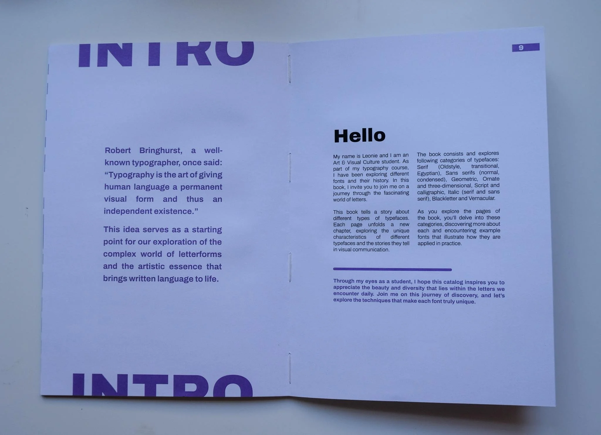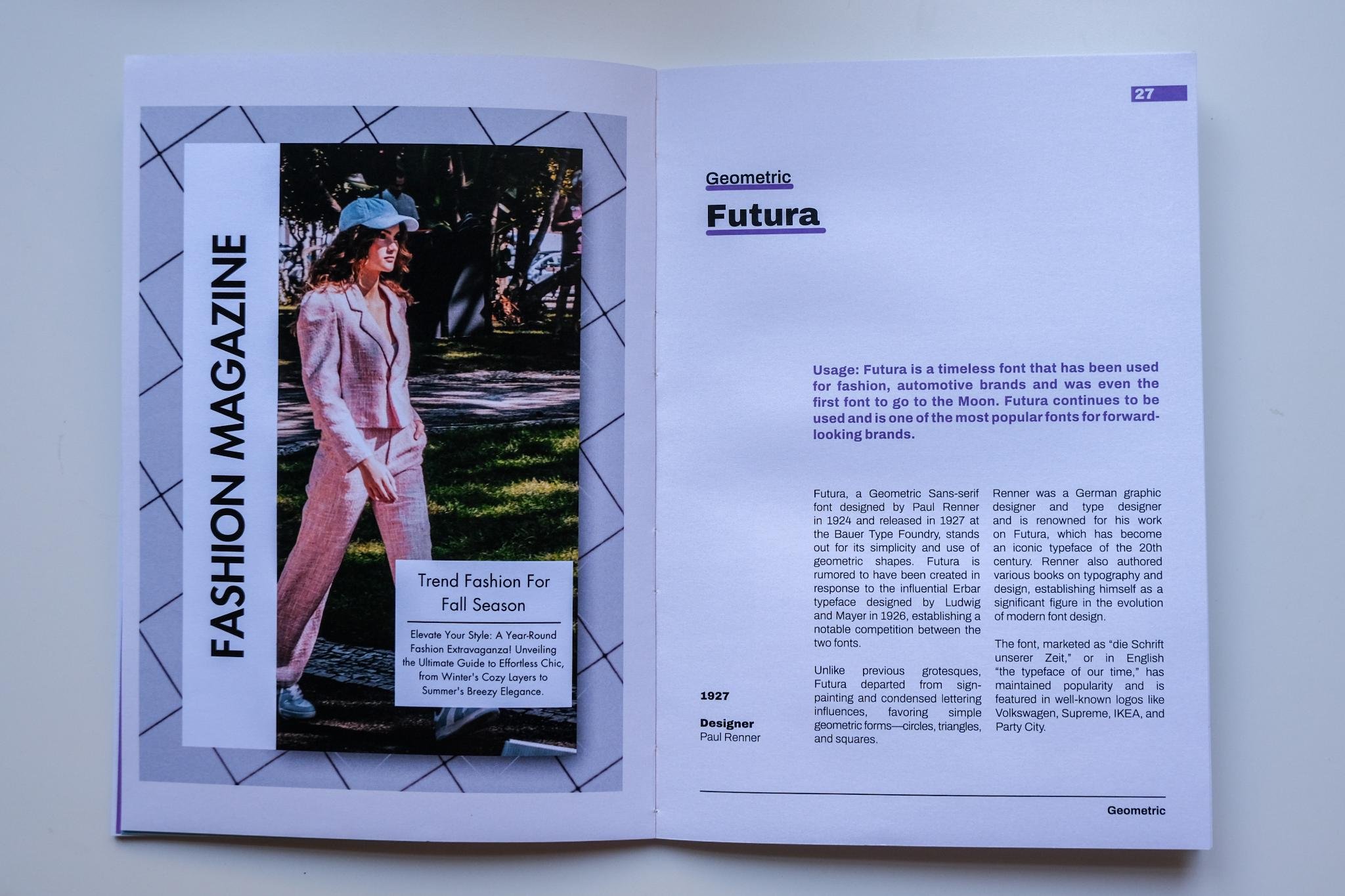 As part of this university project, I produced a comprehensive book showcasing various typefaces from different categories. The book serves as a platform to present different typefaces while exploring their historical backgrounds and unique characteristics.